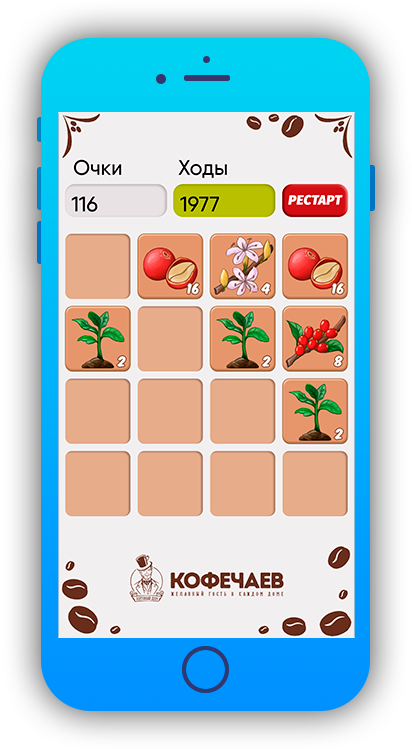 The game has 12 chips with an image. Each chip in ascending order is an evolution of the previous one. The player's task is to reach the last chip. To get a new chip, you need to combine two identical ones. Each completed combination gives points, and the number of points can be converted into coupons, promo codes, points, etc.